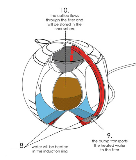 Designer Jan König went a long way to ensure that your coffee will be heated perfectly even and stay warm longer. The dual sphere design not only looks really cool but serves to distribute heat perfectly as your coffee brews. When it’s done the outer bowl acts as an insulator for delicious coffee center. We have to imagine that the Cocoon Coffee maker is the only coffee maker ever designed that would be genuinely interesting to watch.